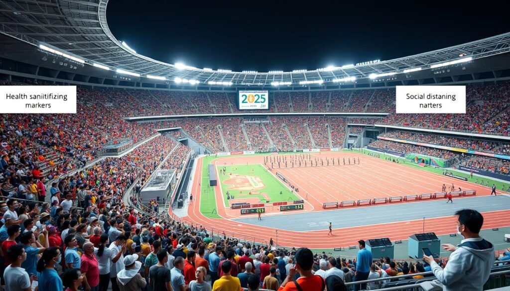 Looking at the Tokyo sports event 2025, we must think about past athletics championships. The 2019 World Athletics Championships in Doha is a good example. It shows us how many people attended, watched on TV, and used social media22. This helps us see what we can do better for 2025.